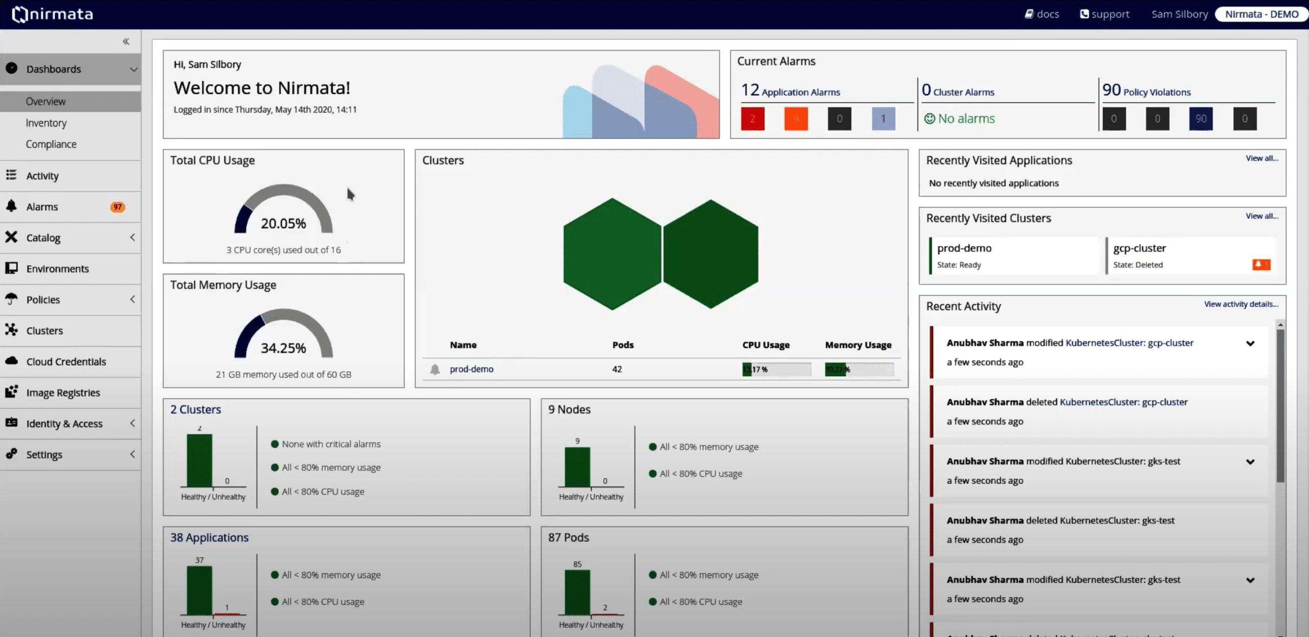 In this webinar, we demonstrate how Nirmata helps enterprises address this challenge. Nirmata enables self-service Kubernetes cluster provisioning on public and private clouds while giving central operations teams complete visibility and control over how these clusters are configured. In addition to ensuring that the clusters are deployed using validated, consistent configurations, operations teams can also ensure that all the required common services are already deployed on the clusters so that developers can focus on building and deploying their applications. Happy developers and operators!